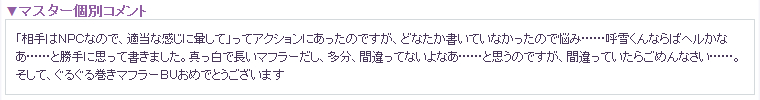 (呼雪の相手はNPCなので、適当な感じに暈して頂ければと思います。
